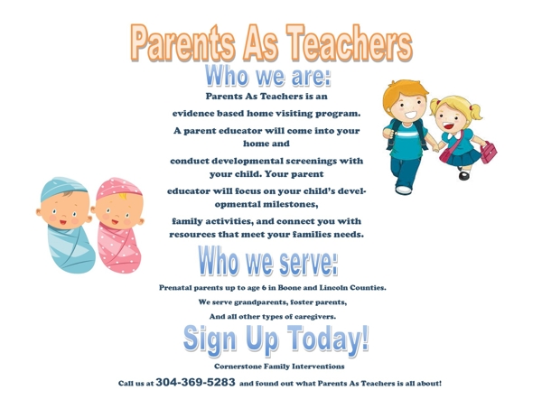 Parents As Teachers is an evidenced based In Home Family Education program. In-Home Family Education is a