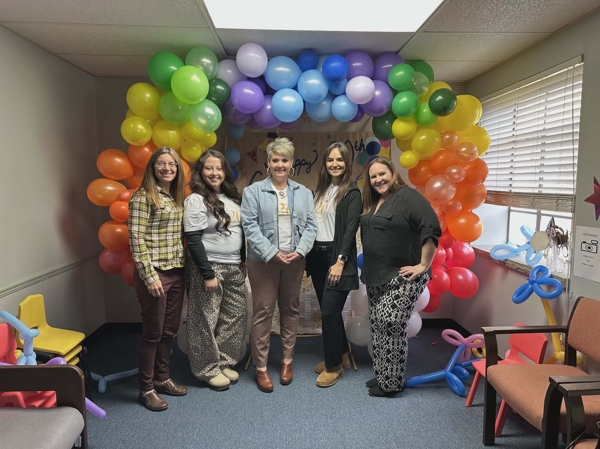 Director Monica Ballard-Booth, Parent Educator Dena Jarrell, Supervisor Cheyanne Booth, and members of the State Team Jo Ensminger and Leeann Blankenship celebrated Cornerstone turning 20!